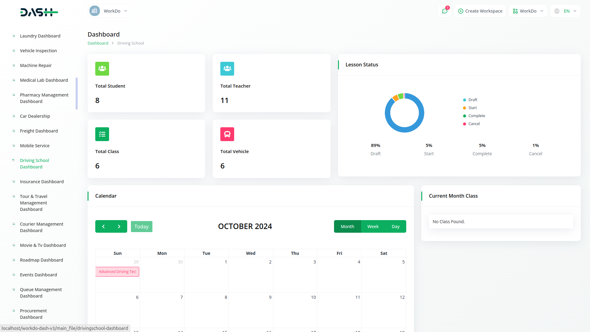 Effortlessly manage students, vehicles, classes, lessons, and invoices in one streamlined platform within Dash SaaS, enhancing efficiency and organization for your driving school operations.