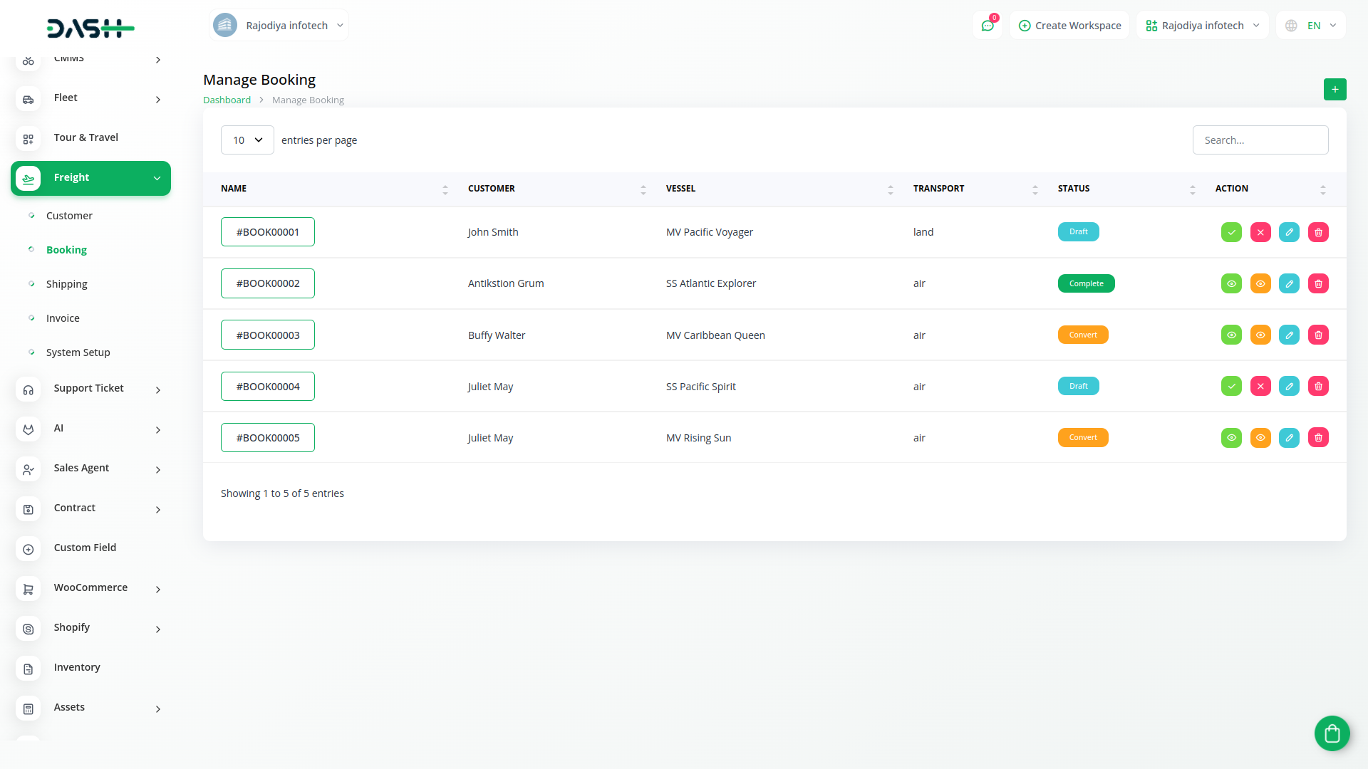 Dash SaaS Freight Management Integration revolutionizes the backend management of logistics operations. Once customers complete their booking process on the front end, you gain immediate access to a suite of powerful tools for efficient freight management. From setting competitive prices to configuring containers and selecting tailored services, the platform empowers you to fine-tune every aspect of your logistics operations according to your unique requirements and preferences.