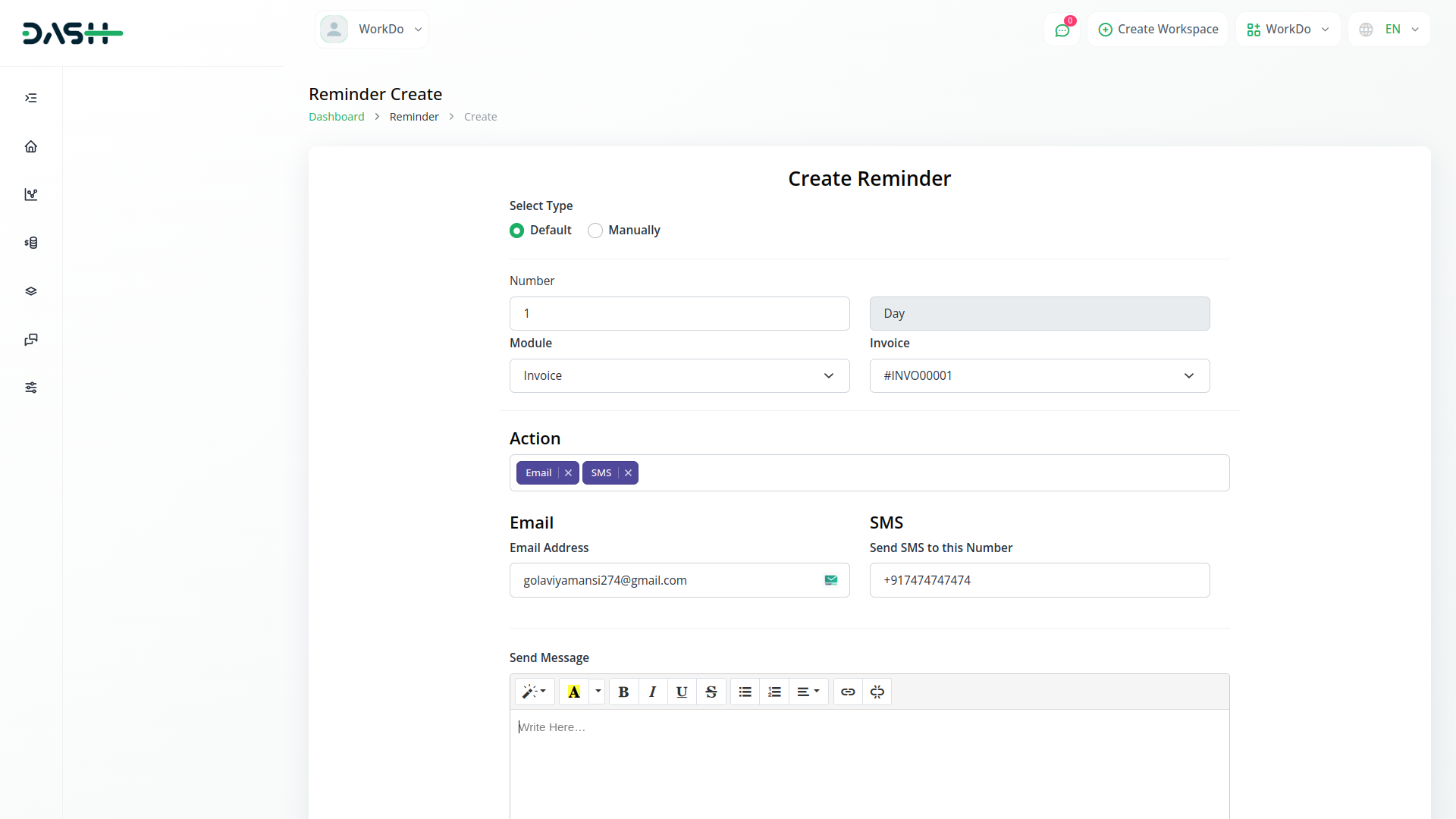 The Reminder Module of Dash SaaS provides a simple yet powerful tool for managing your reminders. With this feature, you can create new reminders as needed and select from various sources through which you want to receive them.
