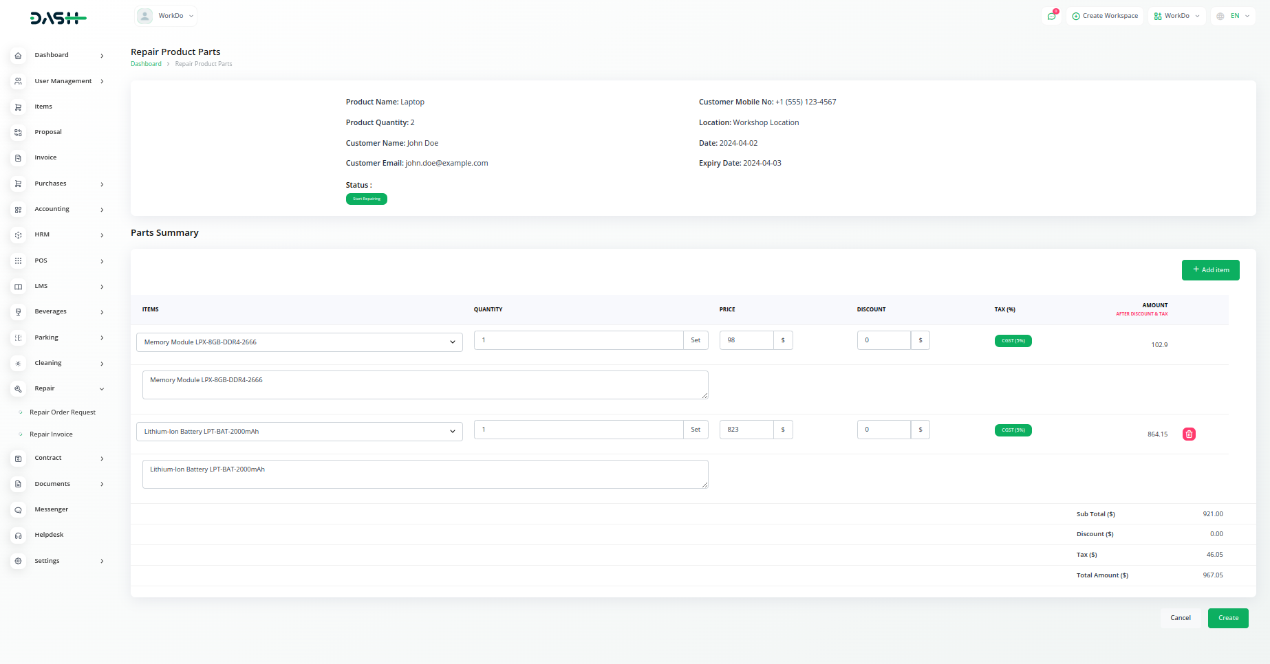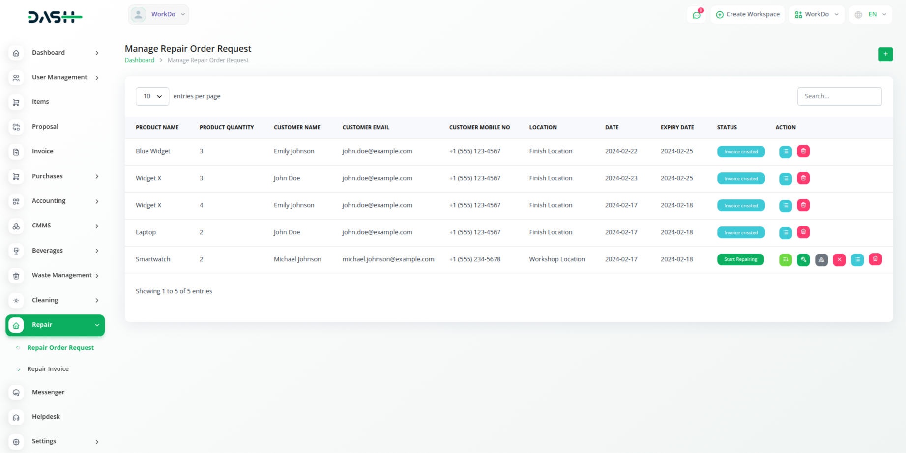 In addition to managing repair orders, our module offers robust scheduling and progress-tracking features. Whether you are planning repairs for multiple clients or monitoring the status of ongoing tasks, Dash SaaS provides real-time updates and notifications to keep you informed every step of the way.