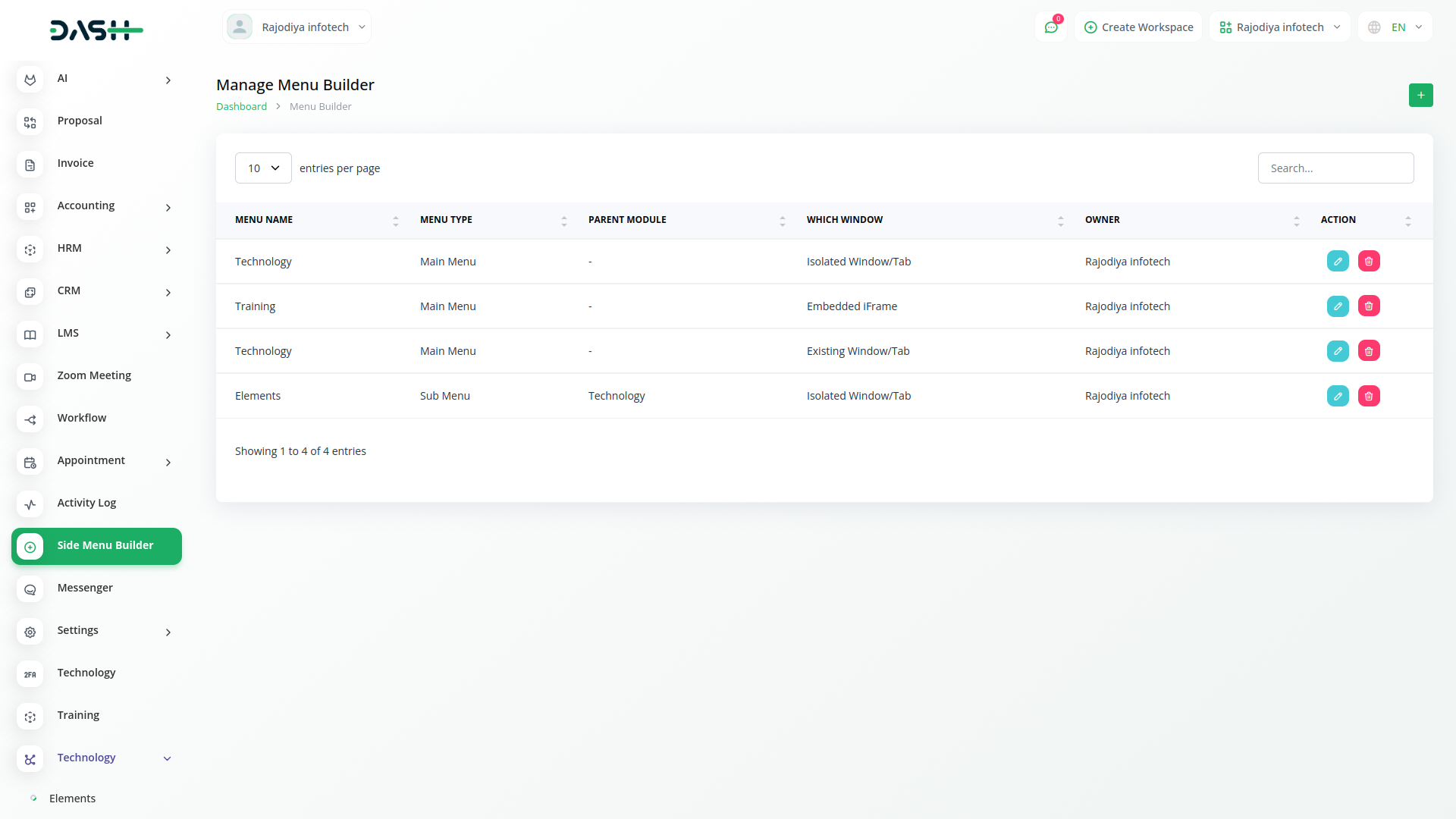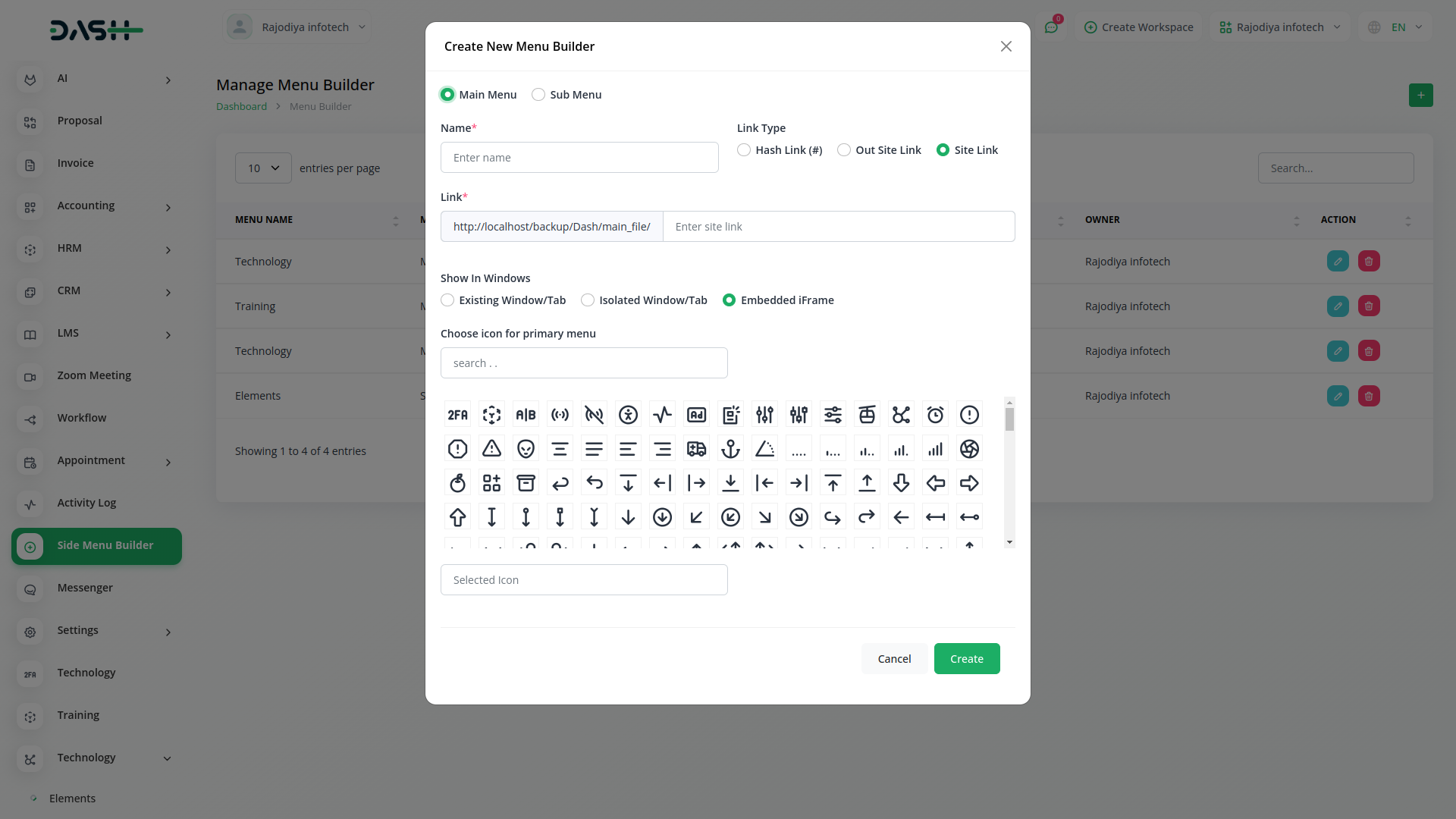 Manage Side Menu Builder