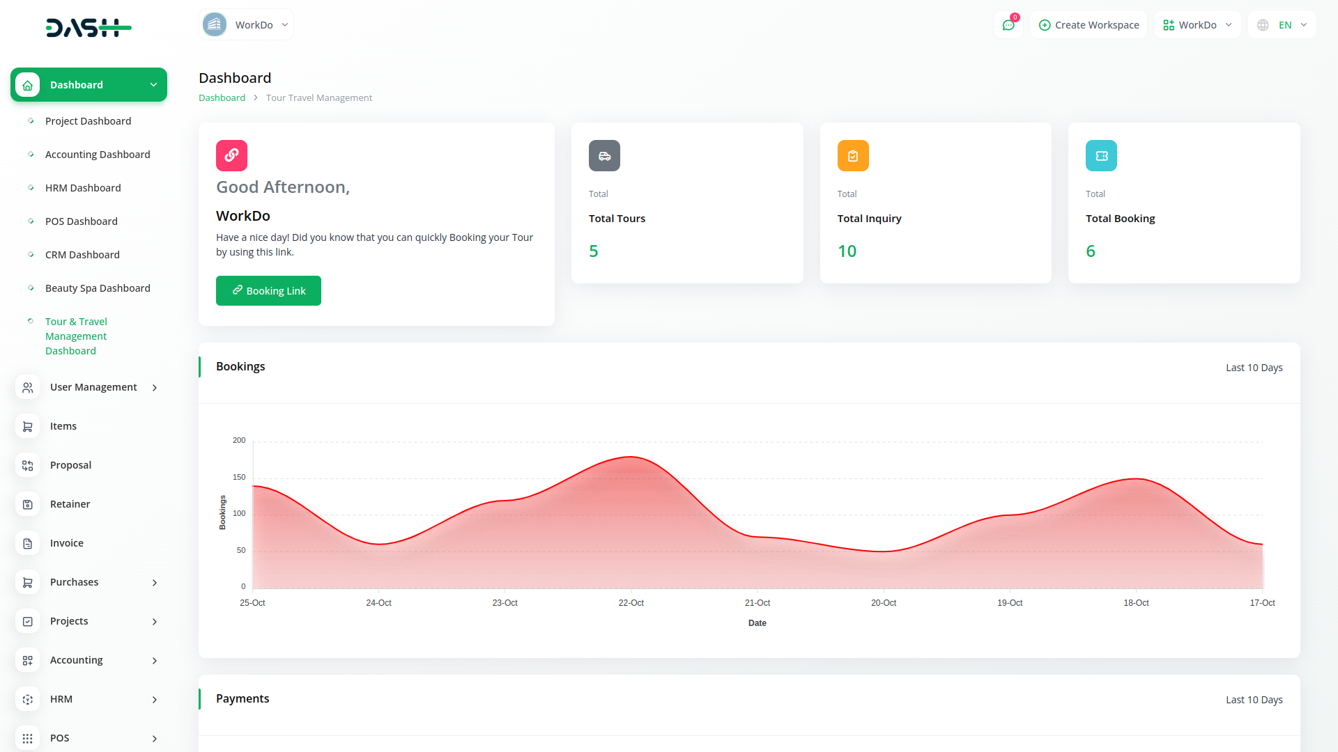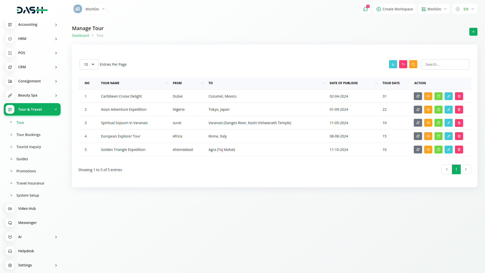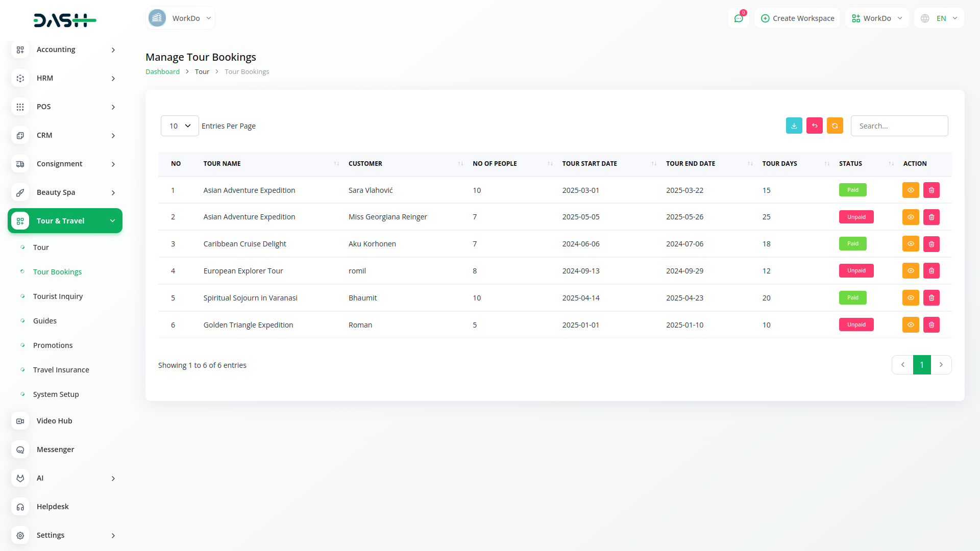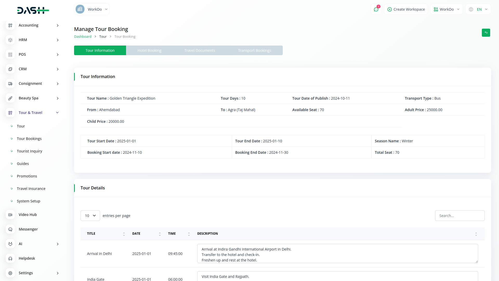 Embark on a seamless journey of travel management with Dash SaaS's Tours & Travels Module. This feature-rich tool empowers you to effortlessly create tours, monitor bookings, and manage payments, making your travel business a stress-free adventure.