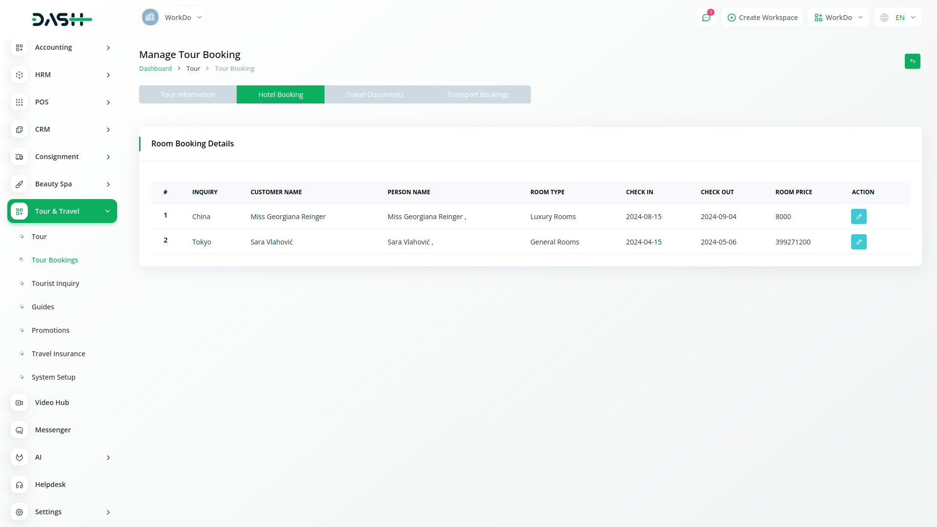 Crafting exciting tours and managing hotel bookings is now easier than ever with Dash SaaS. The Tours & Travels Management Module provides a user-friendly interface where you can effortlessly create captivating travel itineraries and book accommodations seamlessly. Tailor your tours and hotel stays with ease, ensuring a delightful experience for your clients and making your travel business stand out. You will only be able to book hotel rooms if you have already purchased the Hotel and Room Management Module.