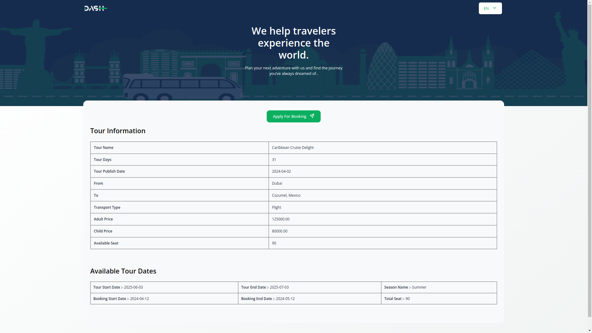 Explore stress-free travel management with Dash SaaS. Easily create captivating tours, monitor bookings in real-time, and manage payments seamlessly – making your travel business a delightful journey for all.