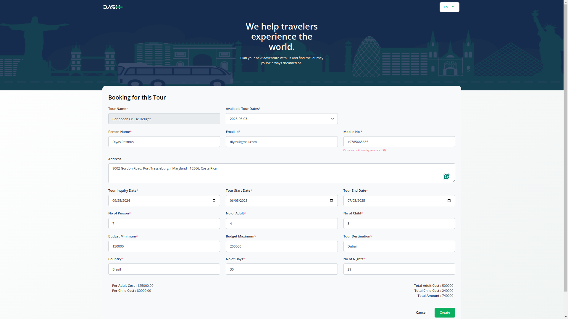 With Dash SaaS, crafting exciting tours is as easy as a walk in the park. The Tours & Travels Management Module provides a user-friendly interface where you can effortlessly create captivating travel itineraries. Tailor your tours with ease, ensuring a delightful experience for your clients and making your travel business stand out.