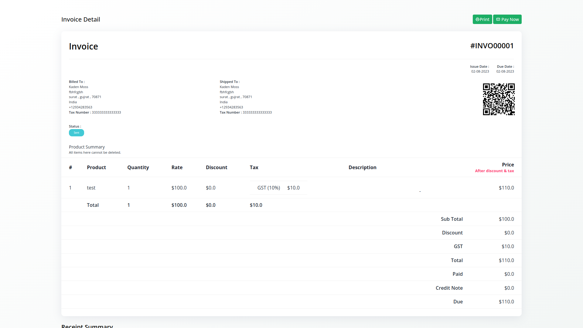 A type of matrix barcode, with a pattern of black and white squares that is machine readable by a QR code scanner or smart device camera in order to enable basic validation of Electronic Invoices and Electronic Notes. For technical details, please refer to the Security Features Implementation Standard.